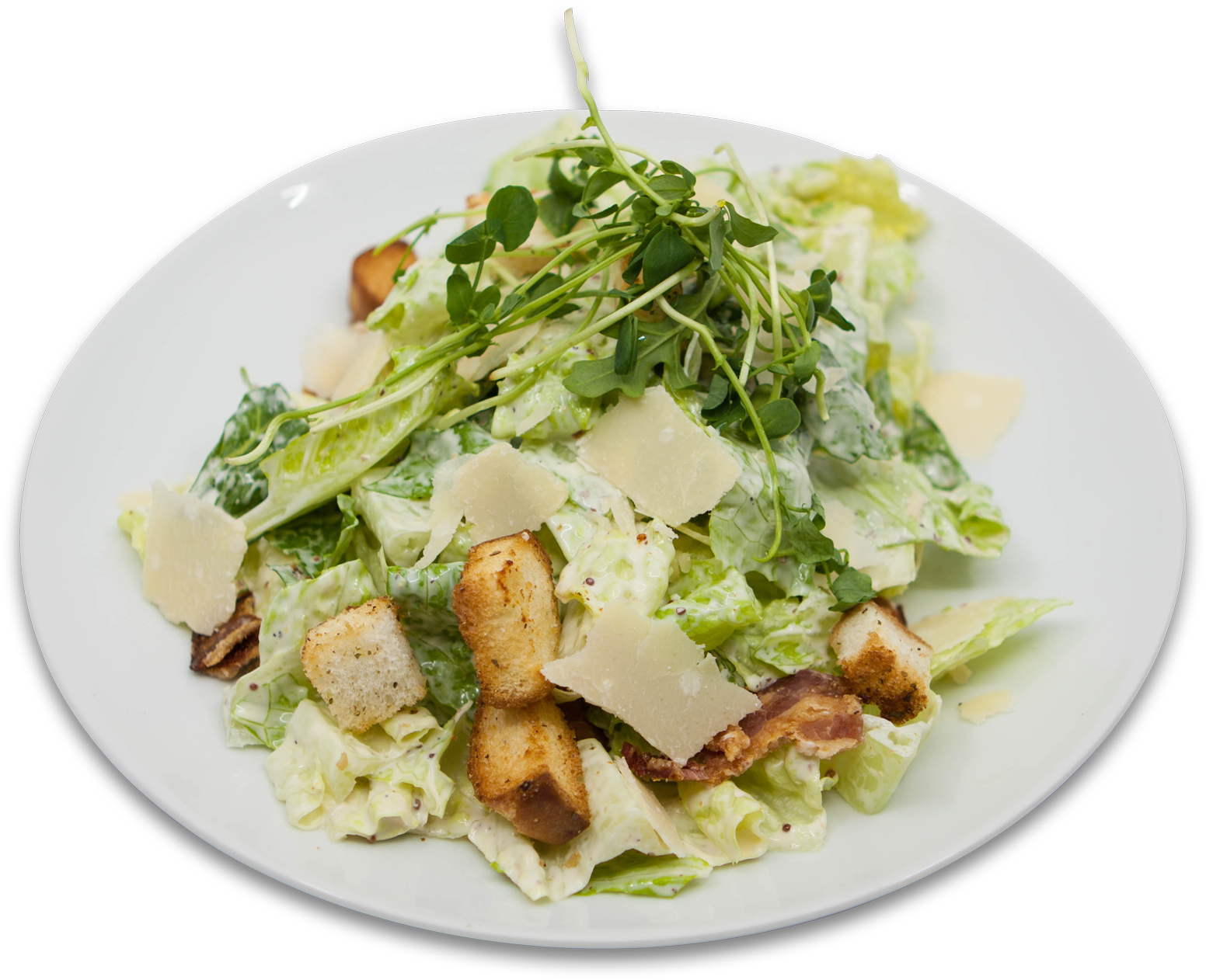 Laitue romaine croustillante servie avec vinaigrette crémeuse maison, croûtons de pain au levain, bacon et parmesan râpé. Servi dans un contenant de 32 onces. Bon pour 2 portions d'à côté.